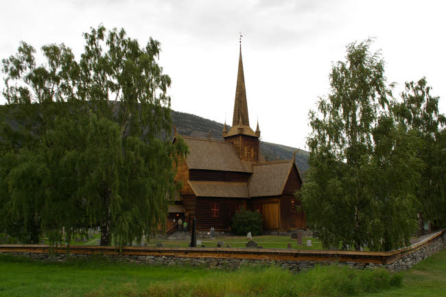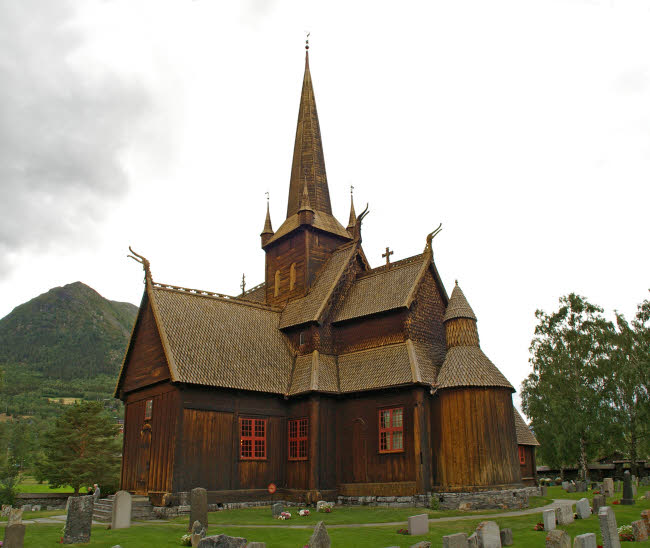 In Lom steht eine der berühmten Stabkirchen. Ursprünglich aus dem 12. Jahrhundert inzwischen mit einigen Umbauten, aber immer aus Holz.