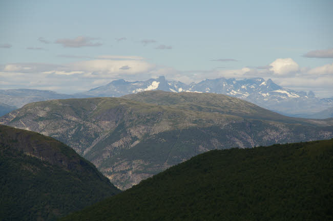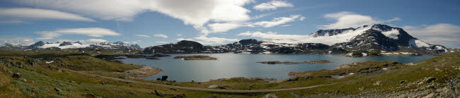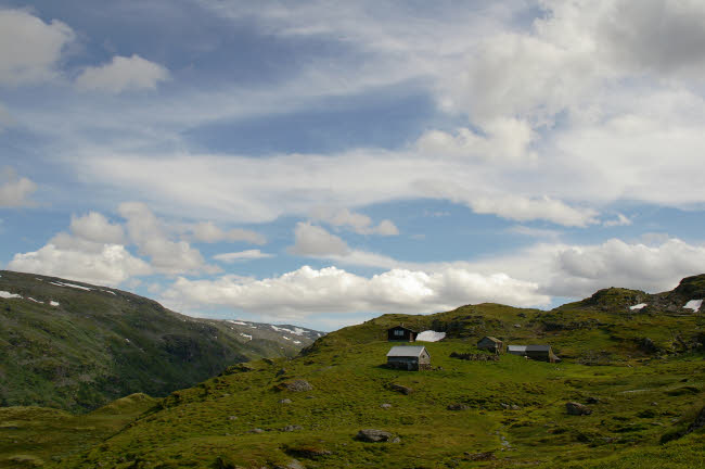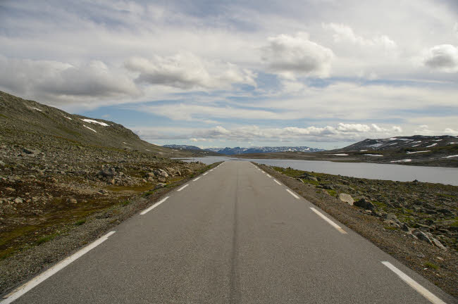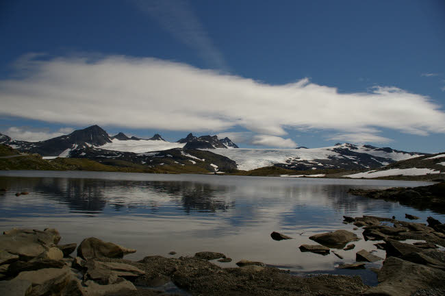 Nach einem Tag auf dem Gletscher (nächste Seite) wollten wir das Sognefjellet auch mal bei Sonne sehen. Bei bestem blauweißen Himmel sind wir also einen kleinen Umweg zurück auf die Hochebene gefahren, bevor wir am Abend über Laerdal und den Auerlandsveggen - wieder ein Hochstrasse - nach Flam am Auerlandfjord gefahren sind.