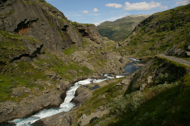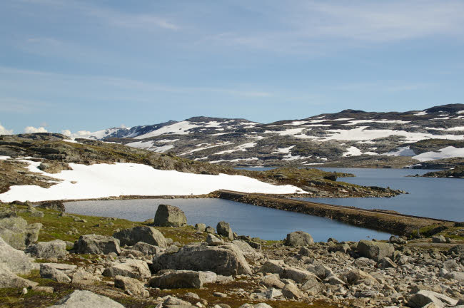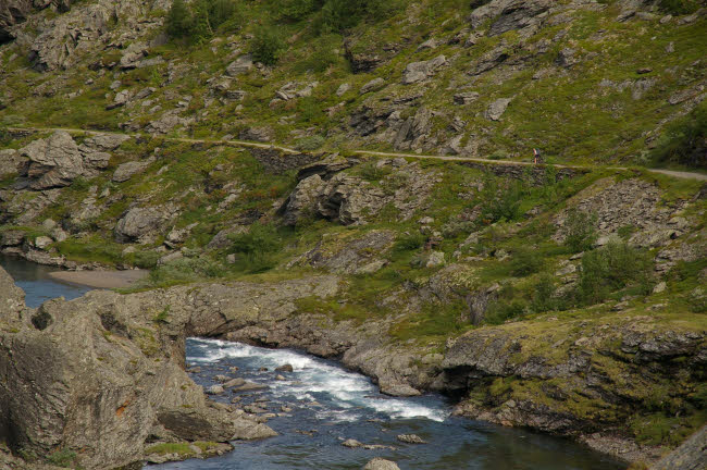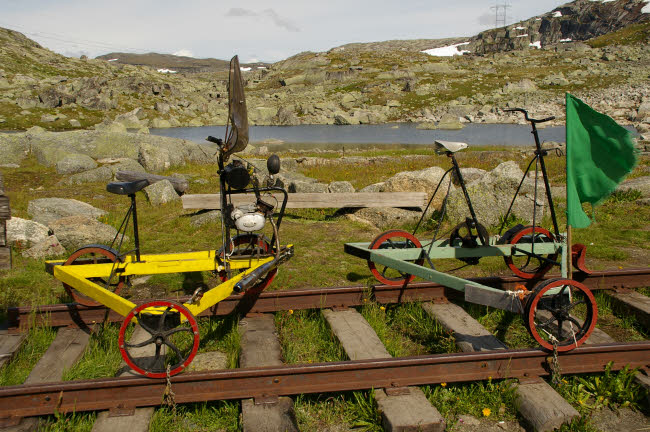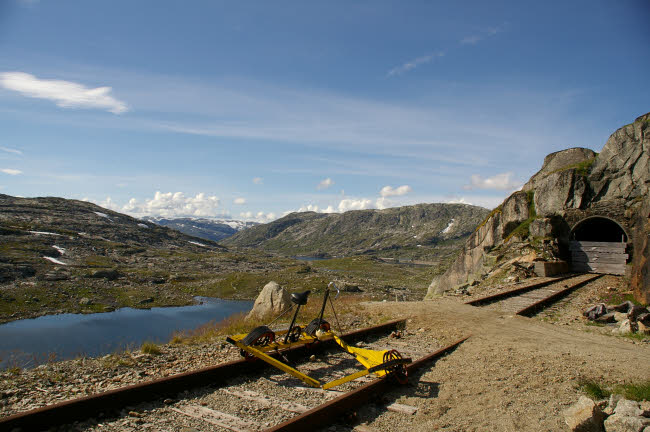 Der Rallarvegen ist eine Schotterstraße, die um die Jahrhundertwende für den Bau und Erhalt der Eisenbahnstrecke über den Hardangerjokulen gebaut wurde. Heute ist sie eine der wenigen Radlwege in Norwegen.
