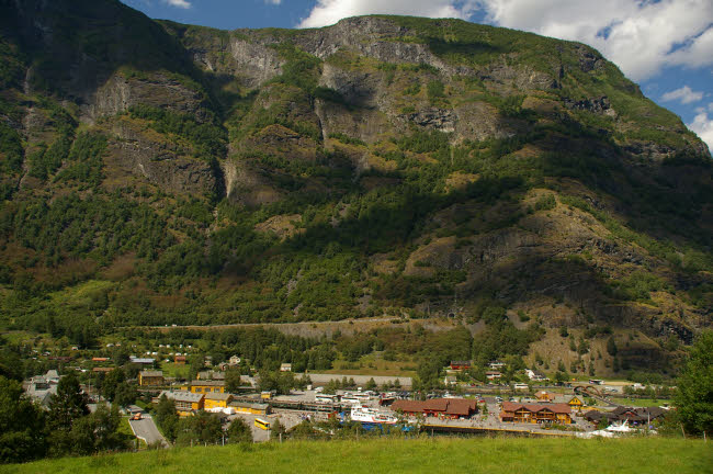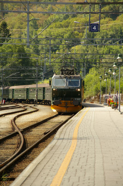 Flam an sich hat nur eine Schiffsanlegestelle für die großen Kreuzfahrtschiffe, den Bahnhof der Flambahn und einig Hotels. Viele Touris steigen nur aus ihrem Schiff in die Bahn, halten zum Fotostop am Kjosfossen, haben dann im Myrdal 15 Minuten Zeit zum Umsteigen zurück nach Flam und nach einem kurzen Bummel durch die Souveniergeschäfte am Kai müssen sie wieder auf Ihr Schiff. Zum Glück haben wir genügend Zeit um etwas mehr zu sehen und zu erleben.