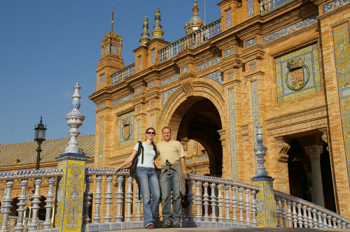 Den Rest vom Tag und auch das meiste vom nächsten machten wir Sevilla unsicher. Kathetrale - die ist wirklich groß, Alcazar - der ist wirklich beeindruckend, Santa Cruz - so nannte sich das Viertel in dem wir uns mit dem Auto verfahren haben, Fußgängerzone, Plaza de Espana - Gebaut für die Iberoamerikanische Weltausstellung 1929, aber leider fast ungenutz und zunehmend verfallend/verdreckend, ..... , halt sightseeing