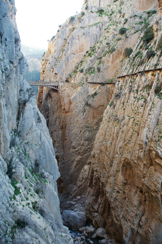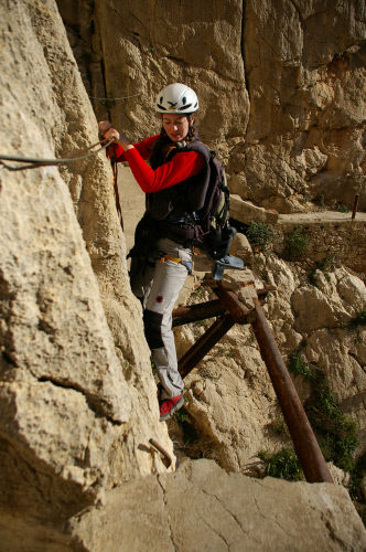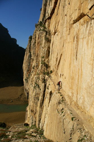 Ansonst gibts zu El Chorro viel zu erzählen, aber besser ist einfach hinfliegen. Der Fels ist super, aber die Routen beginnen ehr so ab 6a - 6c. Zum Aufwährmen hier und da mal ein paar IVer und Ver. Aber traumhaft Umgebung und Kletterei. Vor allem der "Camino del Rey", ein alter Weg durch die Schlucht und jetzt als Klettersteig zu begehen. Die Drahtseile sind aber überwiegend dazu da, dass falls der Weg unter einem wegbricht man nicht hinterher fliegt.