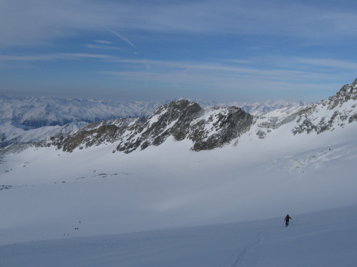 Auf dem Abstieg kam es dann zu kurzen Staus, da noch eine Seilschaft hoch kam und die Bergführerseilschaft uns wild überholt hat. Verglichen mit einem guten Sommertag aber alles in allem wahrscheinlich für den Glockner völlig harmlos.