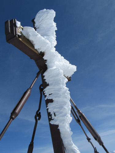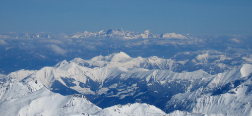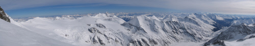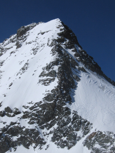 . Doch leider war auch der Wind noch vorhanden. Föhnstrum mit mächtigen Schneefahnen am Grat und den Gipflen.