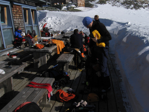 Der Großglockner war unser Ziel. Doch zuerst stand der Aufstieg zur Stüdlhütte bevor. Das Wetter war dann doch nicht so gut wie gemeldet und so gingen wir bei leichtem Schneefall und am Ende mit ordentlich Wind hinauf.