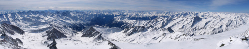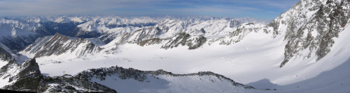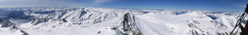 Top of Austria wie er auch genannt wird, machte an diesem Tag seinem Namen alle ehre. Einige Minuten waren uns alleine am Gipfel gegönnt, nachdem wir bis auf einen Solokletterer, der uns schon vorher wieder entgegen kam, alle überholt hatten. Dann kam allerdings eine Seilschaft mit Bergführer, die etwas Hektik verbreitet haben. Foto alleine, Foto mit allem, Foto am Gipfelkreuz hängend, ... Die Fernsicht entschädigte aber für einiges.