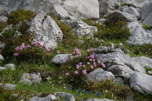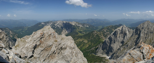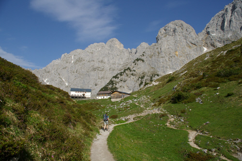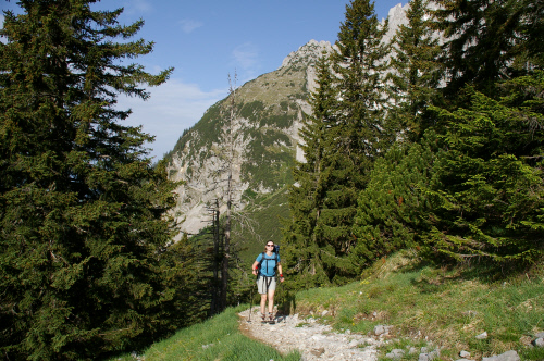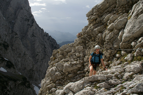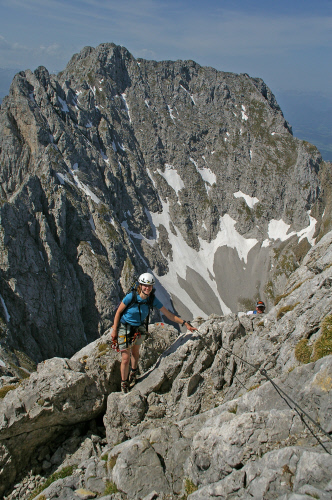 Weiter gings bei Sonne über die Gamsanger und den Jägersteig hinauf auf die Elmauer halt. Ein schöner klassischer Klettersteig, der in aller früh auch nicht überlaufen war.