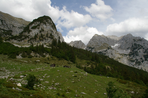 Von der Wochenbrunner Alm gings gemütlich zum warm werden, dann steiler hinauf zur Gruttenhütte. Kurz zeigten sich dunkle Wolken im Süden, verzogen sich aber bald wieder.