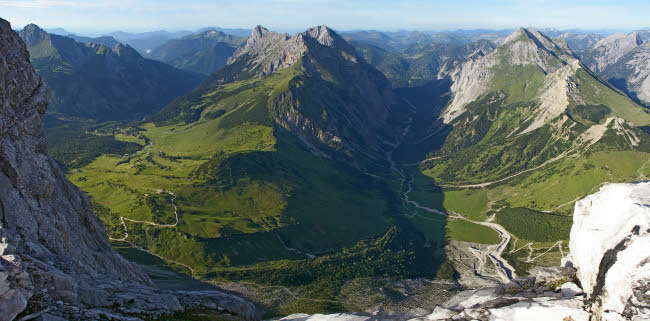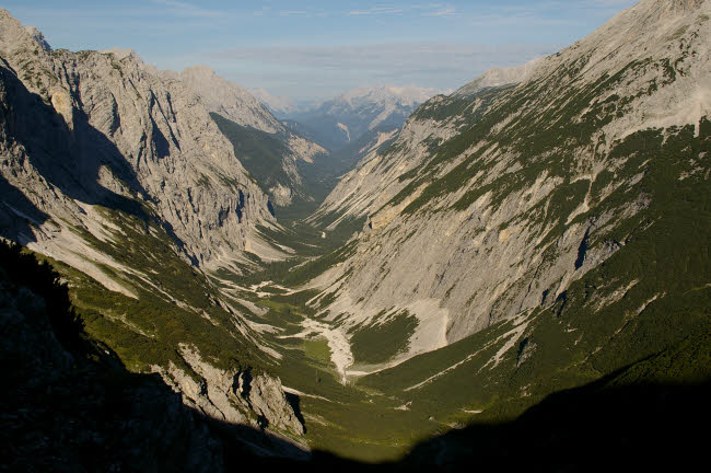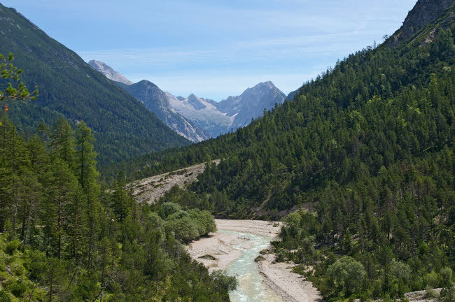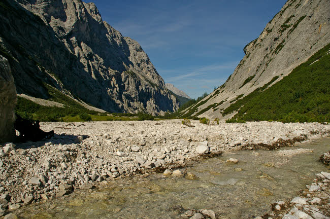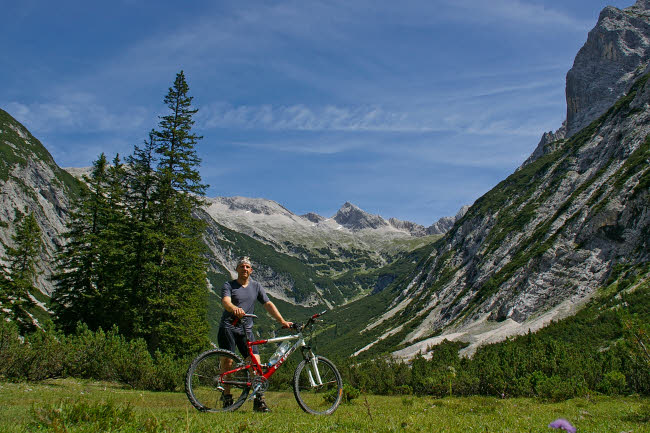 Der Weg führt von Scharnitz aus hinein ins Karwendel und Hinterautal flach und super mit dem Radl fahrbar ca. 14km bis zur Kastenalm. Ab hier wirds etwas steiler und schottriger, so dass das MTB ab der Kastenalm nötig wird. So kommt man relativ schnell ins Roßloch, einen abgeschiedenen Talkessel, in den sich kaum Leute verirren.