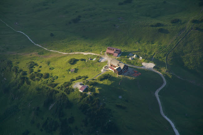 Ersatzfrühstück gabs dann auf der Kastenalm - am Vortag noch alle Bänke besetzt, heute dank der frühen Uhrzeit noch leer - bei Mohnkuchen und Radler.