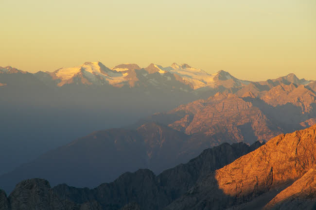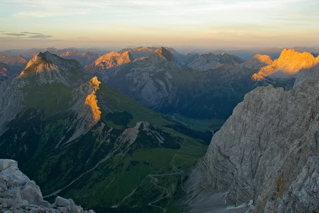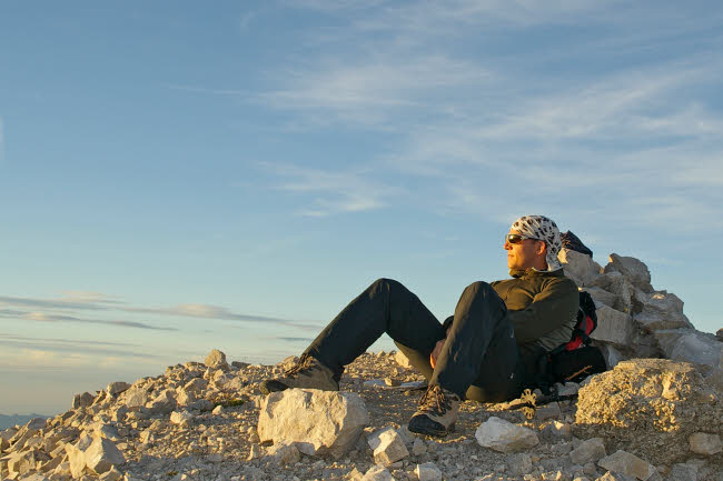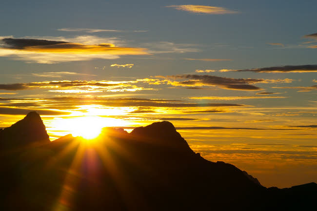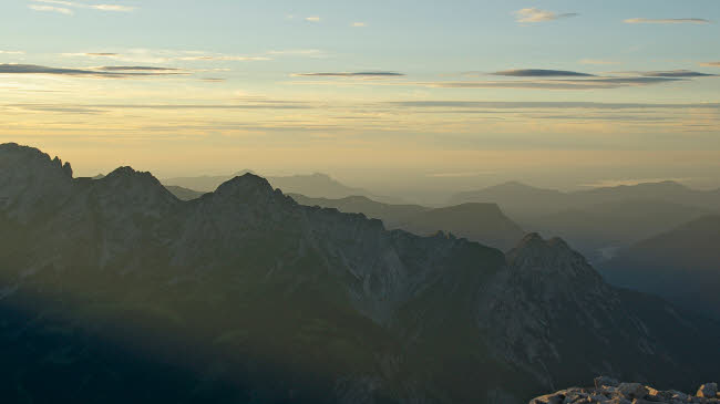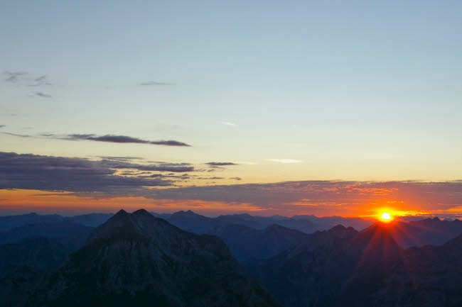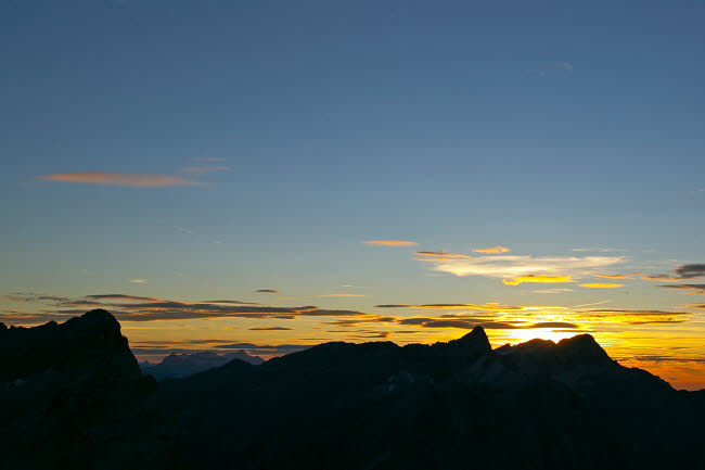 Nachdem ich nach knapp 6 Stunden am Biwak angekommen bin, habe ich mich erst mal ein Stündchen aufs Ohr gelegt, bevor es noch gestärkt durch eine Tüte gebratene Nudeln zum Sonnenuntergang auf den Gipfel der Laliderer Spitze ging.