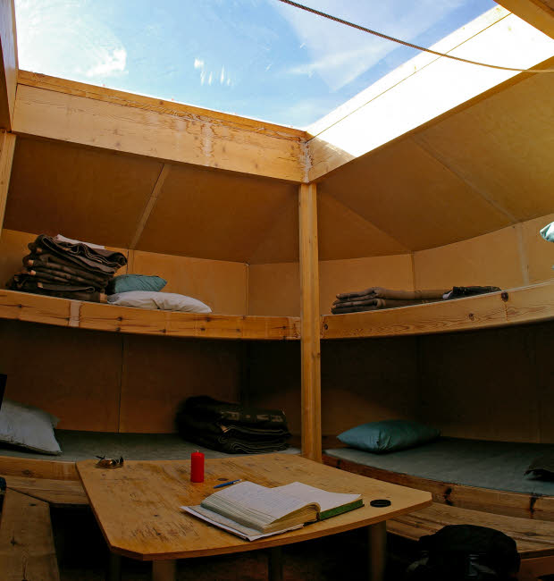 Eine traumhaft schöne Biwakschachtel, kurz unter dem Gipfel der Laliderer Spitze, nur 10m weg von der fast 1000m hohen Laliderer Nordwand. Pefekt ausgestattet, mit Mattatzen, Decken, Kopfkissen, Kocher inkl. Ersatzkartusche, Töpfen, Tassen, ... und das Beste ein ca. 4qm große Lichtkuppel aus Plexiglas zum Sterne schaun in der Nacht.