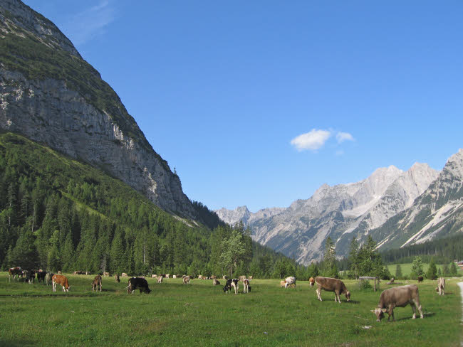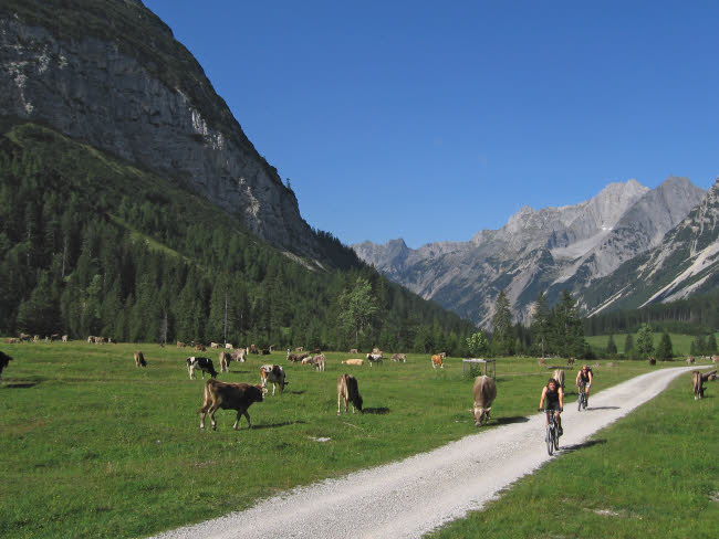 Karwendelrunde06.09.2008Keiner hatte Zeit für mich, bzw. ich hatte zu kurzfristig gefragt. Aber das Wetter war zu schön um daheim zu bleiben. Mal schaun, was die Kondition hergibt. Einmal mit dem Mountainbike durchs Karwendel. Von Mittenwald über Scharnitz, Karwendelhaus, Kleinen Ahornboden, Johannistal, Hinterriß, Vordersbauchau und Fereinalm wieder zurück nach Mittenwald. Bei der Auffahrt zum Karwendelalm gabts dann auch den Almabtrieb von der Hochalm zu besichtigen. Auch ohne großen Schmuck der Tiere ein tolles Specktakel, So viele Kühe und Jungtiere auf einem Fleck. Kondition war auch gut, so dass ich nach 7 Stunden inkl. Pausen wieder zurück am Auto war (1800Hm/77km). Gibt auch mal wieder ein gutes Gefühl nach einer tollen Tour erschöpft zu sein. Ciao Reiner |