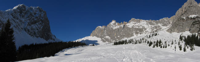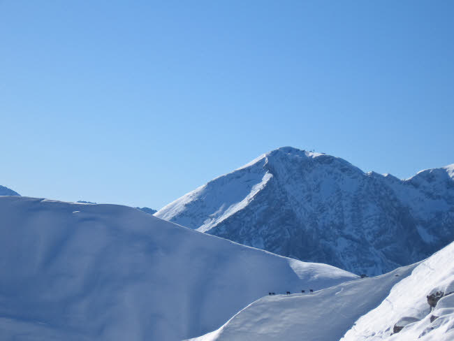 Leutasch ist Skitourenmäßig nur für die Hohe Munde bekannt. Dort sollen aber die Bedingungen nicht gut sein - zu wenig Schnee und südseitig verharscht. Auf der Suche nach einer passenden Skitour bei unserem Kurzurlaub mit Martin und Julia in Leutasch ist mir das frei Gelände oben im Puittal Richtung Schlüsselkarspitze - Scharnitzjoch aufgefallen, da muss doch was gehen.