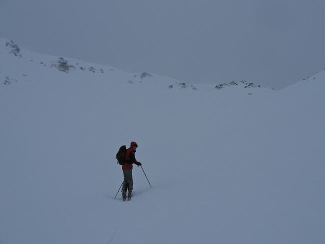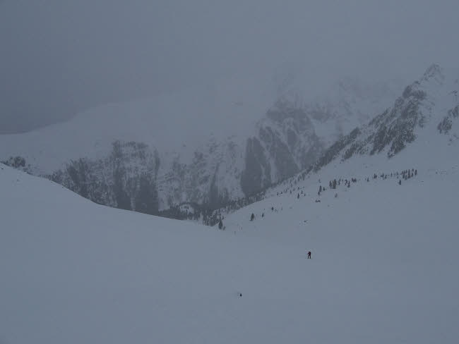 Der Schnee war immer noch traumhaft, aber Sicht und Gelände (Flachstücke) ehr suboptimal.