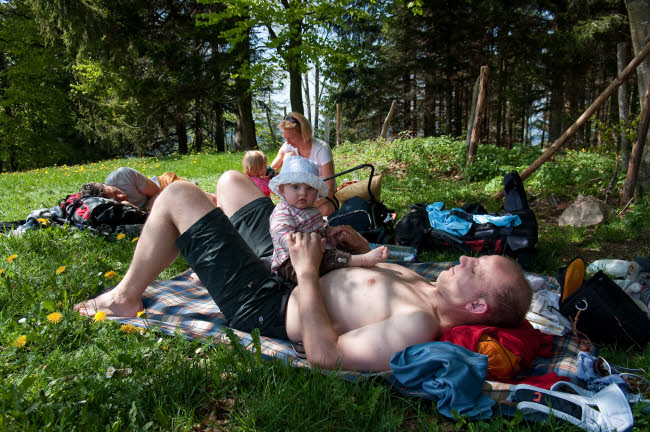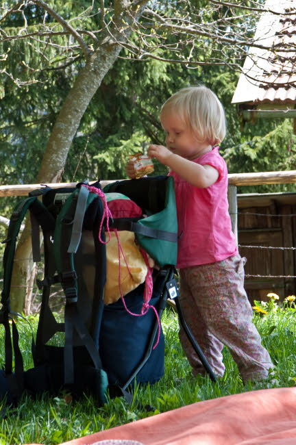 Kleine Wanderung in der Nähe von Lenggries zu einem sonnigen Picknikplatz.