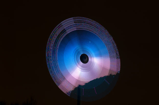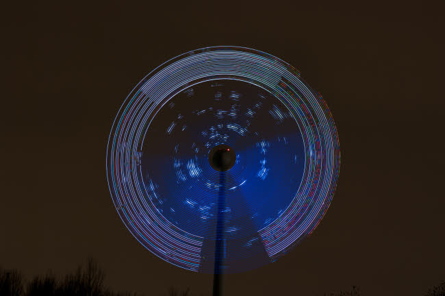 Stern des SüdensDezember 2009Der Künstler Michael Pendry hat zusammen mit Siemens das Windrad im Münchner Norden im Dezember 2009 zum Kunstobjekt umfunktioniert. Insgesamt wurden 9.000 Leuchtdioden auf den Rotorblättern angebracht, die dann entsprechend angesteuert und mit Langzeitbelichtung fotografiert Muster und Bilder am Münchner Nachthimmel gaben. Die durchgehenden Streifen am Rotorende waren leider schon defekte LEDs die dauerhaft geleuchtet haben. Ciao Reiner |