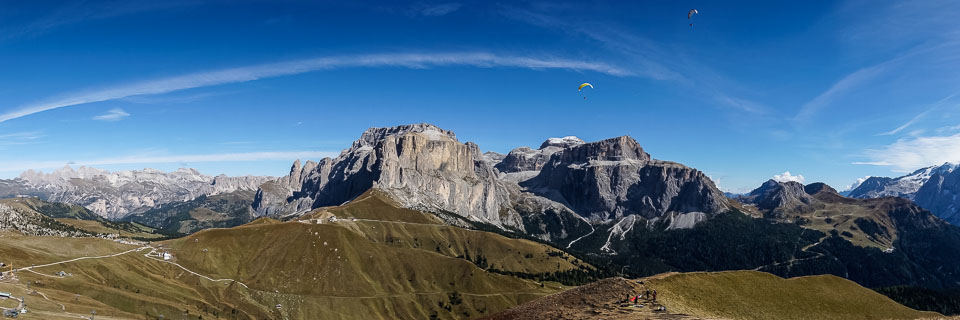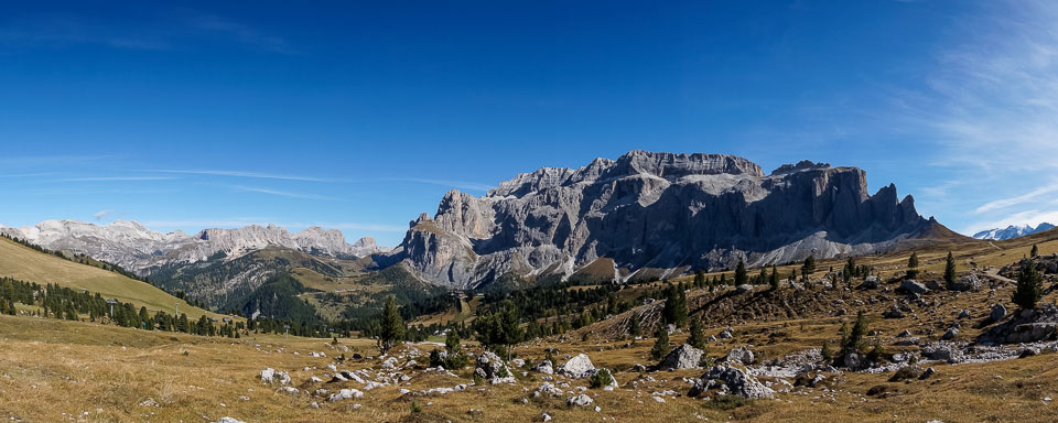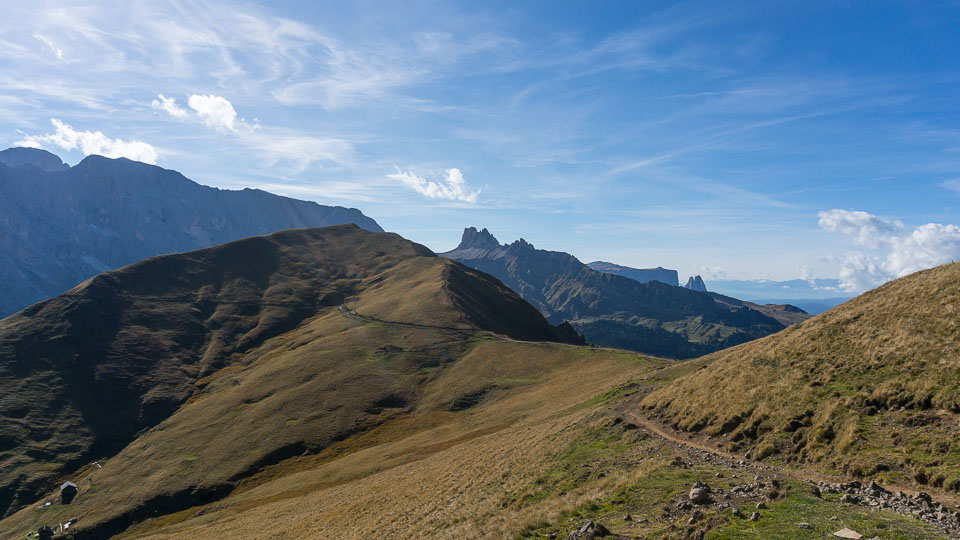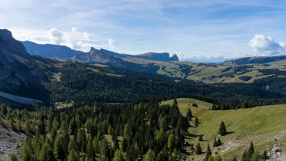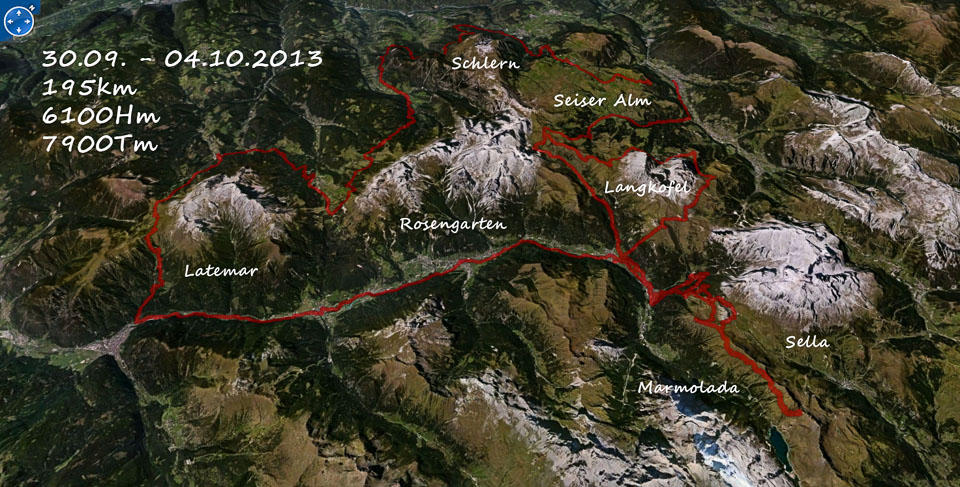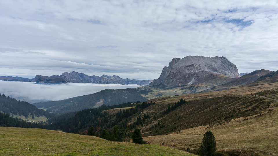 Von St. Ulrich auf die Seiser Alm, rund um den Schlern nach St. Zyprian - vorbei an Rosengarten und Latemar - Eine Runde um Lankofel und Plattkofel - Bindelweg - Durchs Val Duron zurück zur Seiser Alm und wieder nach St. Ulrich