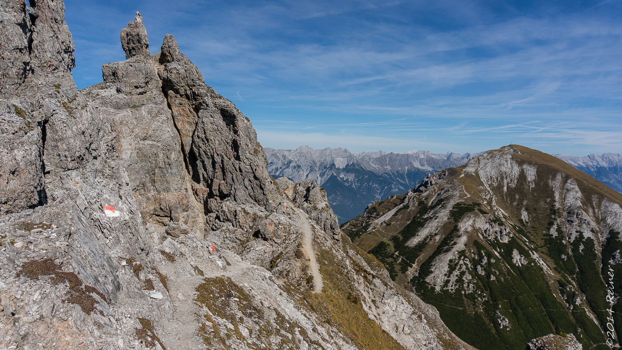 Brenta Feeling gleich hinter Innsbruck - Horizontale Felsbänder - Bizarre Felsformationen - Kleine Klettersteigeinlagen - Und man ist einsam, was allerdings Ende September unter der Woche nicht verwunderlich ist.