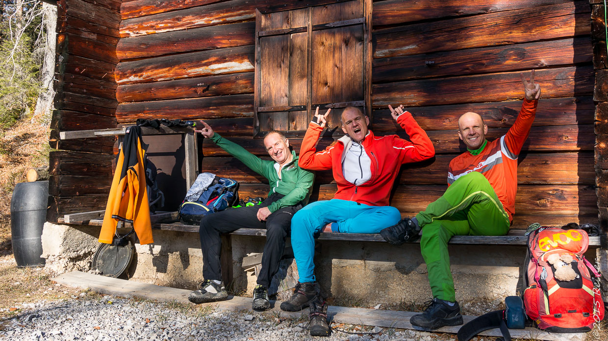 Beim zweiten Aufstieg gings dann weiter hinauf, am Galgenwurfköpferl entlang, um den Rißer Hochkopf herum zum Rißersattel. Hier gabs dann nochmal eine Stärkung für die anstehende Abfahrt, allerdings war die Gaskartusche für den Kaffee auf halben Weg leer.