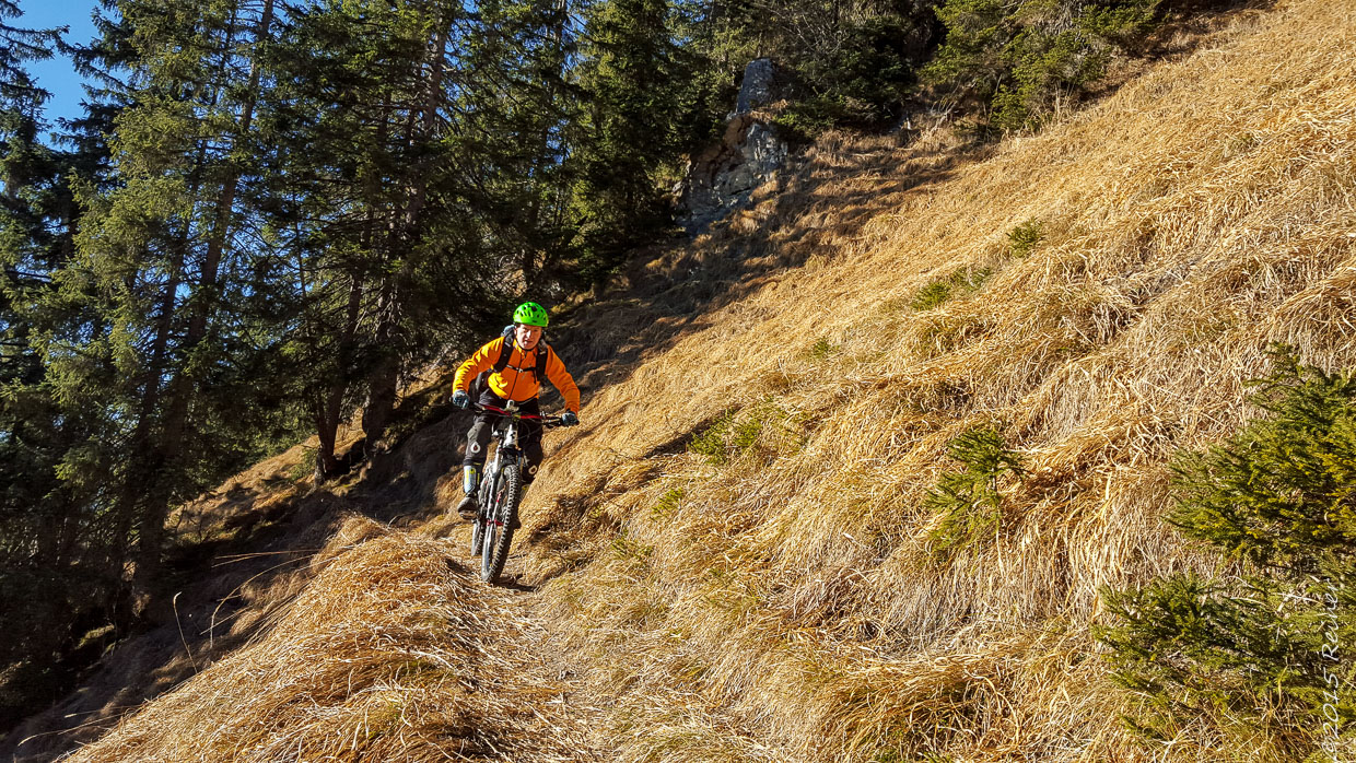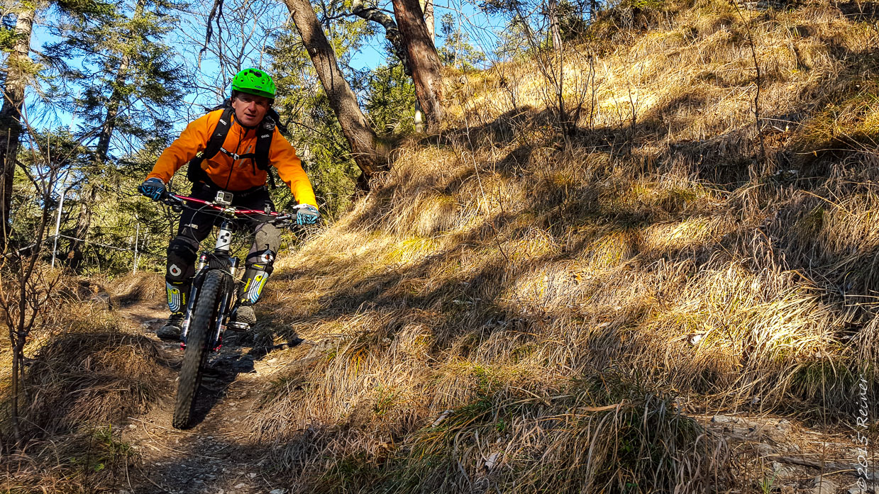 Ein Tag vor Silvester und immer noch kann man Biken. Der Winter lässt auf sich warten, die Sonne scheint und die Trails sind trocken. Da lassen sich die morgentlichen leicht frostigen Temperaturen mit einer extra Lage Klamotten verkraften.