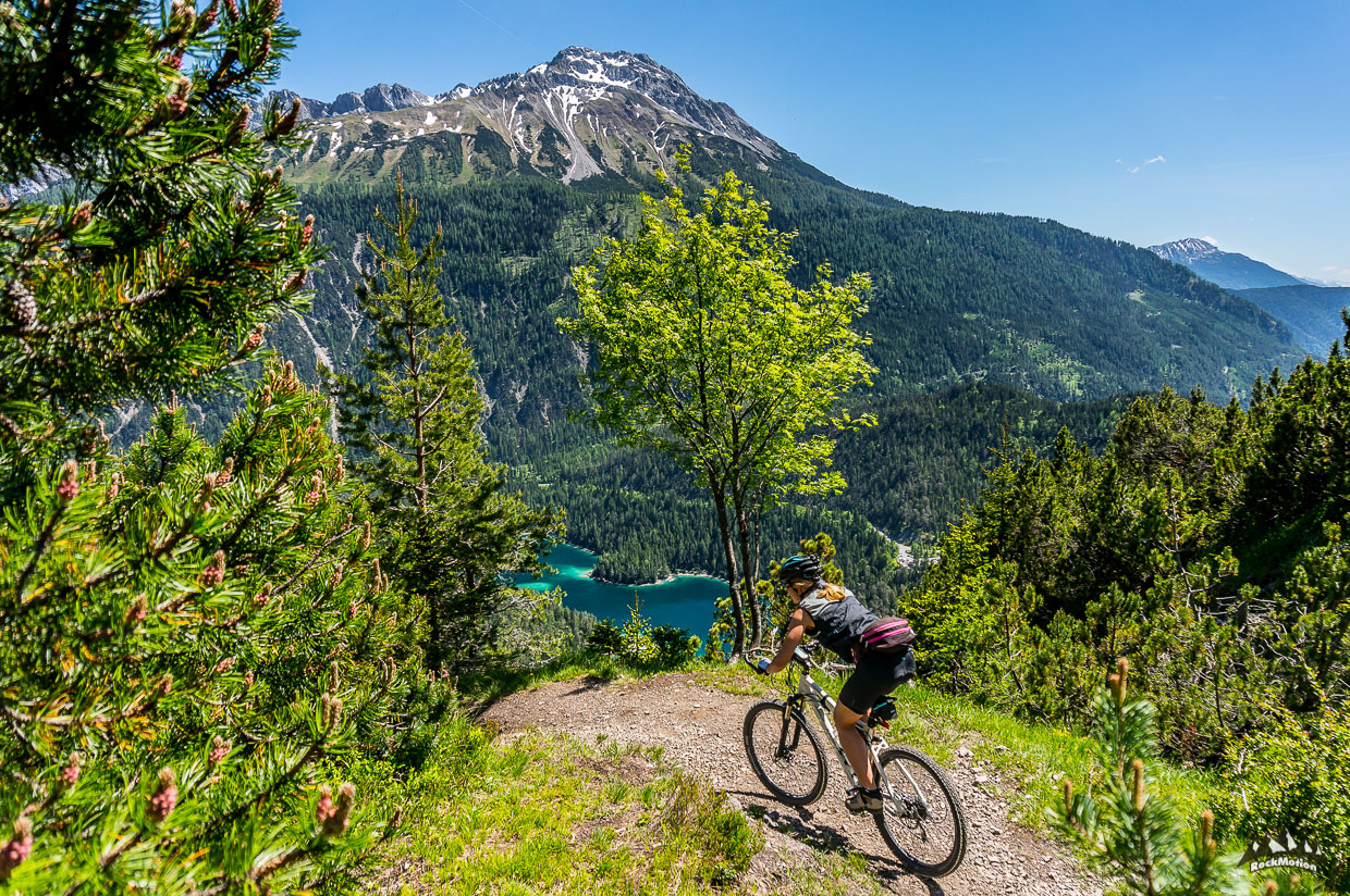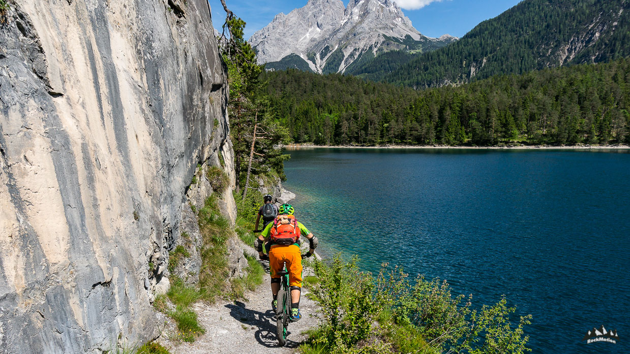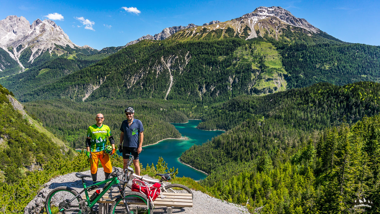 Danach gabs weiteren Genuß, erst das leckere Essen auf der Hütte und dann ein Traumtrail - Blindseetrail. Tiefblick, Ausblick - eine herrliche Linie hinunter zum smaragdgrünen Blindsee, in dem man zur Abkühlung dann auch gleich rein hüpfen kann. Über einige weitere Wurzeltrails, die es in sich hatten, ging es durch den Ehrwalder Talkessel zurück zum Ausgangspunkt wo in Marks VW Bus ein kühles Radler wartete. Genial Tag mit genialen Kollegen.