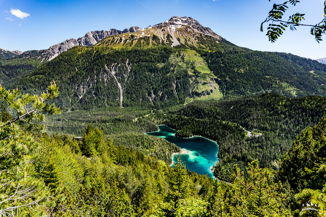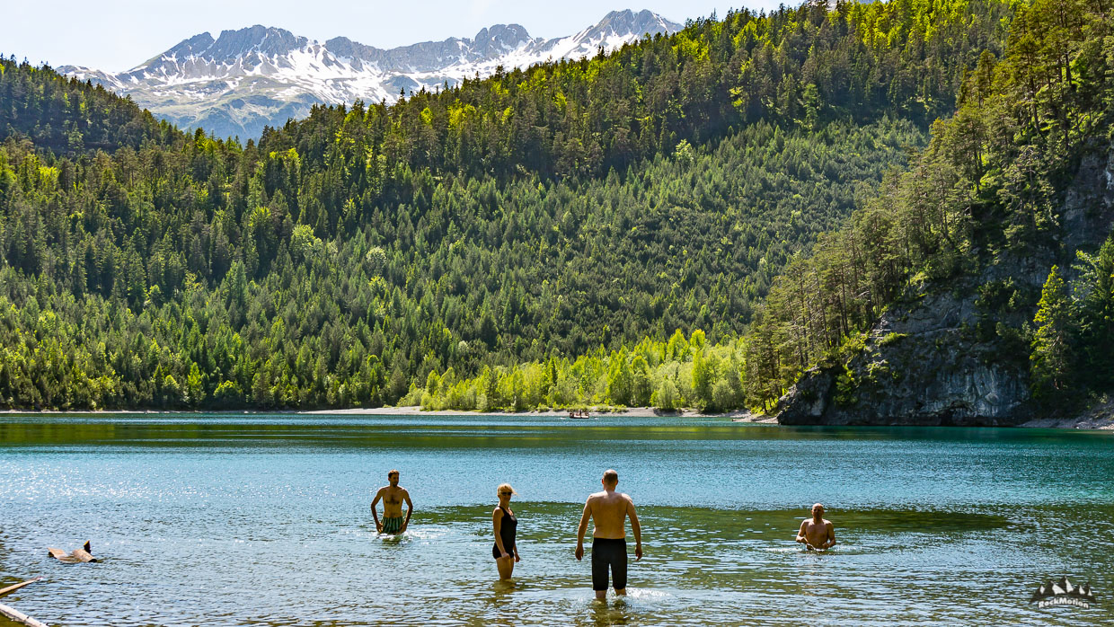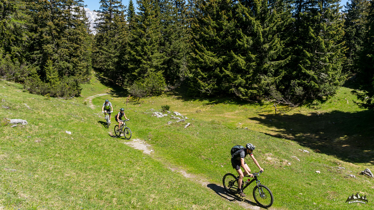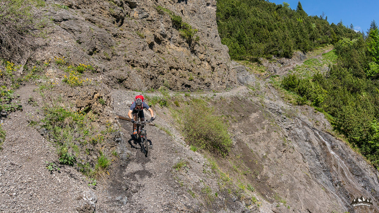 Danach gabs weiteren Genuß, erst das leckere Essen auf der Hütte und dann ein Traumtrail - Blindseetrail. Tiefblick, Ausblick - eine herrliche Linie hinunter zum smaragdgrünen Blindsee, in dem man zur Abkühlung dann auch gleich rein hüpfen kann. Über einige weitere Wurzeltrails, die es in sich hatten, ging es durch den Ehrwalder Talkessel zurück zum Ausgangspunkt wo in Marks VW Bus ein kühles Radler wartete. Genial Tag mit genialen Kollegen.