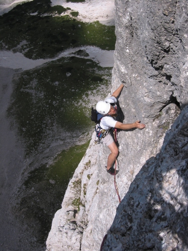 Andi in der Schlüsselseilänge der Herbst/Teufel (VI-) / Oberreintal