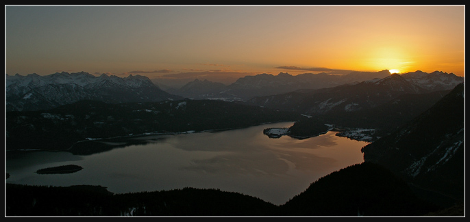 Sonnenuntergang hinter der Zugspitze - Jochberg - Walchensee