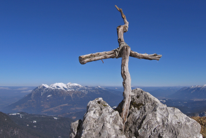Gipfelkreuz des Mauerschartenkopfes - Wetterstein - im Hintergrund das Estergebirge